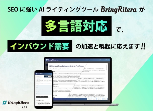 多言語対応!AI記事作成ツール「BringRitera」はインバウンド需要の加速にも応えるSEOツール!