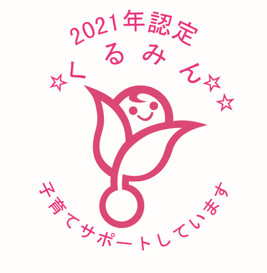 「子育てサポート企業」として、認定を受けた証のマークです。「次世代育成支援対策推進法」に基づき、一般事業主行動計画を策定した企業のうち、計画に定めた目標を達成し、一定の基準を満たした企業は、申請を行うことによって、厚生労働大臣の認定(くるみん認定)を受けることができます。