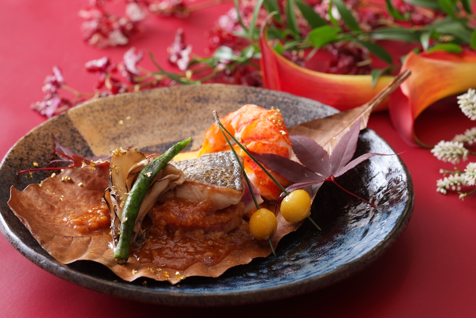 9月~11月の鉄板焼のシーズンメニューは、秋に旬を迎える高級魚「黒ムツ」をご用意。朴葉を焼くことででる香りと合わせて、黒ムツの濃厚な脂とオマール海老の旨味が楽しめる魚料理、キメが細かく光沢があり、よく締まった赤身から“世界最高峰の牛肉”と呼ばれている黒毛和牛のフィレ(80g)、旬の洋ナシをつかったデザートなど、実り豊かな秋の美食をご堪能いただけます。様々なシーンのお祝いで、ストリングスホテルが贈る極上食材の美味しさと心躍るひと時をお楽しみください。