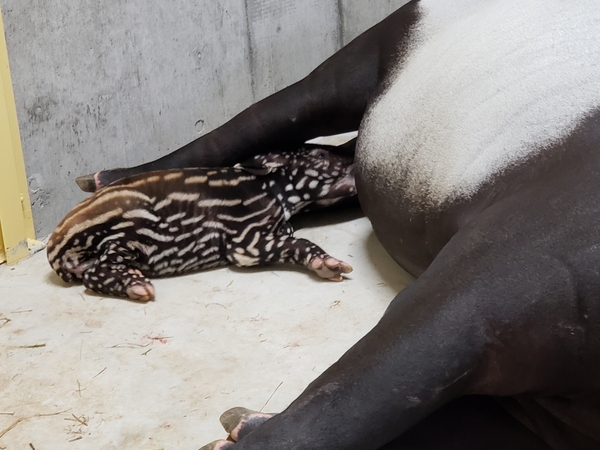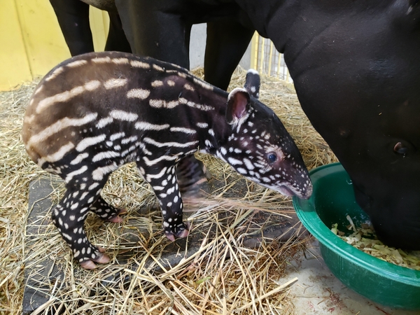群馬サファリワールド(株)が運営する群馬サファリパークにおいて、11/16日未明、マレーバク(メスのワカバ)が出産しました。イノシシのウリ坊のような模様が特徴的で、生後半年で消滅し親と同じ模様になるため、この仔どもの状態を見るためには年内の来園をお勧めしています。