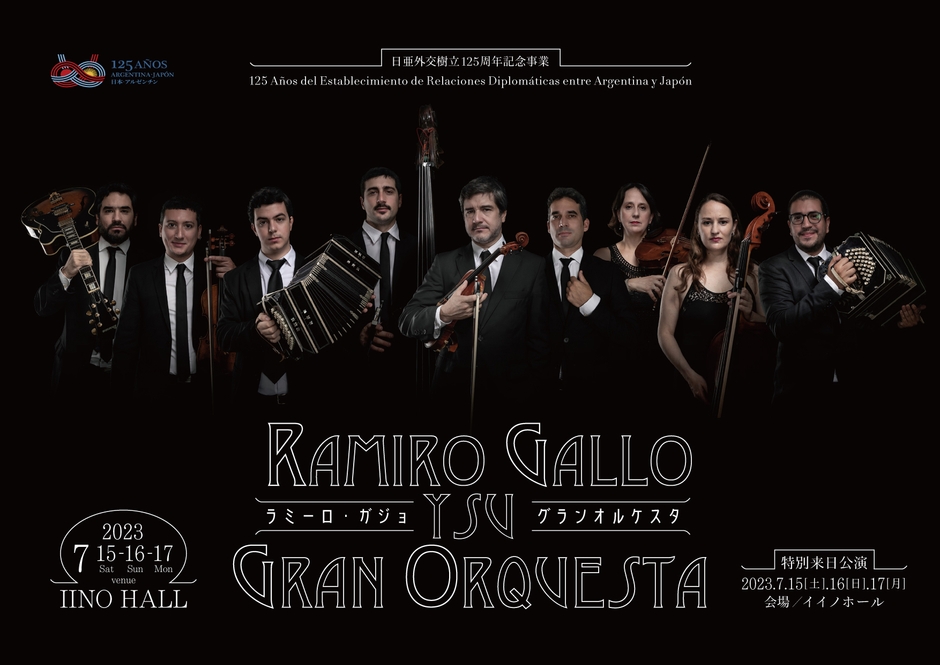 スパークポイントプロダクションズ主催、日亜外交樹立125周年記念事業「ラミーロ・ガジョ・グランオルケスタ特別来日公演」が2023年7月15日 (土) ~2023年7月17日 (月・祝)にイイノホール(霞ヶ関駅直結)(東京都千代田区内幸町2-1-1 飯野ビルディング4階~6階)にて開催されます。
