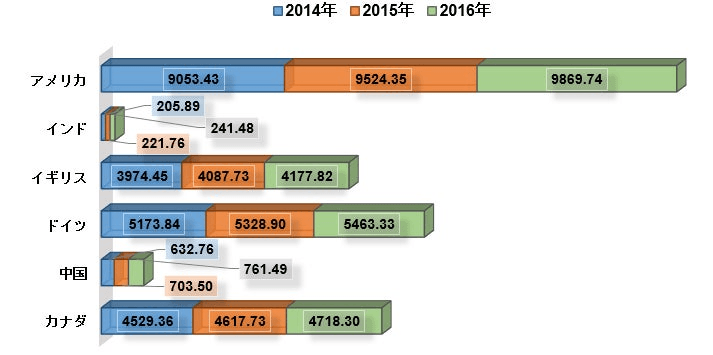 一人当たりの医療費、PPP(米ドル)– 2014-2016年