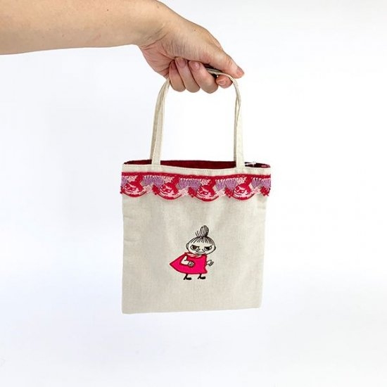 レースと刺繍とナチュラルは裏地。好きな要素しかない丁度いいサイズ。大人カワイイムーミン&リトルミィのミニトートバッグです。