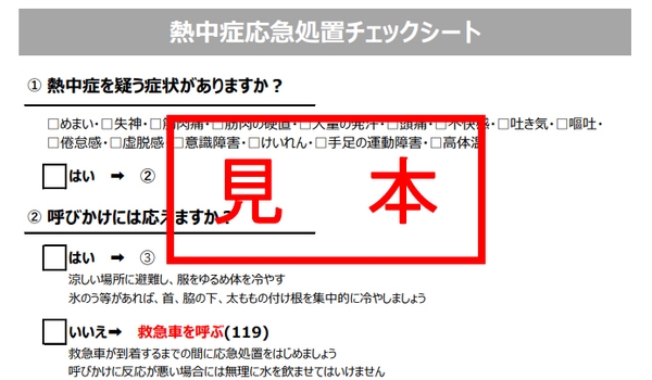 出典:環境省熱中症予防情報サイト 熱中症の対処方法(応急処置) https://www.wbgt.env.go.jp/heatillness_checksheet.php