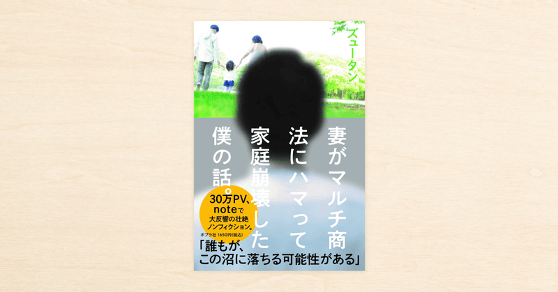 メディアプラットフォームnoteでズュータンさんが投稿したマルチ商法被害についての記事が『妻がマルチ商法にハマって家庭崩壊した僕の話。』として書籍化。ポプラ社から発売されました。ズュータンさんは会社員のかたわら、自身の体験やマルチ商法被害者の方へのインタビューをnoteで発信し、話題を集めました。