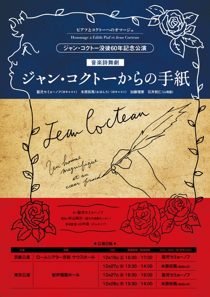 聖児セミョーノフ主演。2022年9月、相手役に元宝塚男役トップスターの安奈淳らを迎えシアタートップスで上演し、好評を博した音楽劇『あなたはエディット・ピアフを知っていますか?』。ピアフとジャン・コクトーがともに没後60年を迎えた今年、新作『ジャン・コクトーからの手紙』を加え、東京・京都二大都市にて上演いたします。