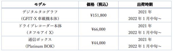 飲酒運転防止のためのアルコール検知器及びIT点呼システムを開発・販売する東海電子株式会社(本社:静岡県富士市 代表取締役:杉本 哲也)は、この度、デジタルタコグラフとドライブレコーダー(テクノホライゾン社製)の販売、及び、この2つの安全機器で使用する『クラウド運行管理システム 運管 PRO』の販売を11月25日に開始いたしました。
