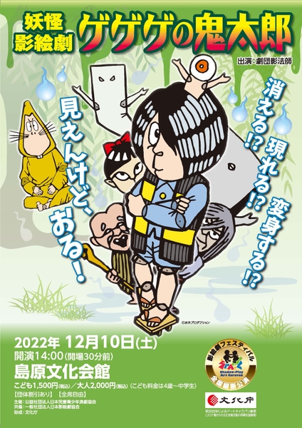 株式会社劇団影法師 妖怪影絵劇「ゲゲゲの鬼太郎」【長崎公演】が2022年12月10日 (土)に島原文化会館(大ホール)(長崎県島原市城内1丁目1177-2)にて上演されます。