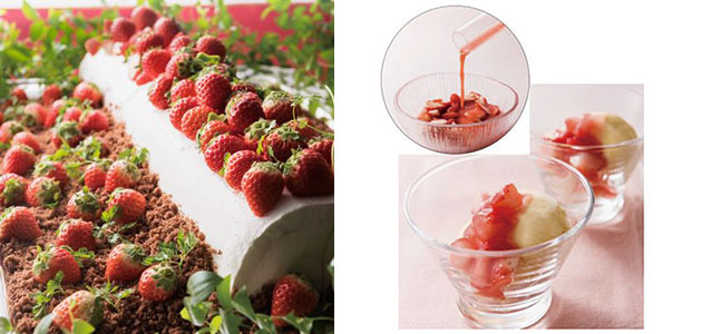 (左)苺畑に見立てたケーキ / (右)絞りたての苺ソースがおいしい【期間】2016年3月1日(火)~5月31日(火)まで