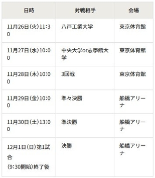 日時・対戦相手・会場 トーナメント表