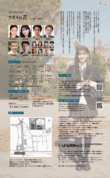 “STRAYDOG”Produce『アオイの花』が2022年1月20日(木)~1月30日(日)にテアトルBONBON(東京都中野区)にて上演されます。チケットはカンフェティ(運営:ロングランプランニング株式会社、東京都新宿区、代表取締役:榑松 ⼤剛)にて好評発売中です。