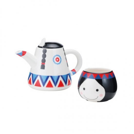 1人用ティーセット、ティーフォーワンもございます。こちらはインディアンの少女デザイン♪カラーリングがとっても可愛いですよね。帽子部分には飾りも付いています。