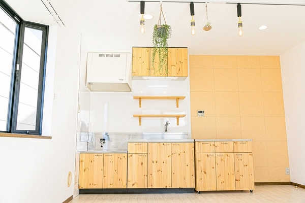 ・部屋内の全ての扉をパイン材に変更。キッチンにもパイン材を導入