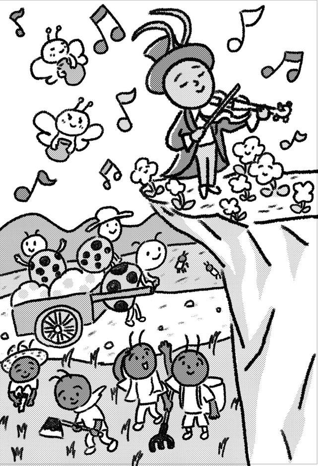 「コツコツ働いたアリは立派だ。でも、得意な音楽で周りを楽しませたキリギリスも同じくらい素晴らしい。なにが得意か、なにを好きと思うかは、人それぞれ。自分の「好き」や「得意」でだれかを楽しませることができるなら、だれもそれを否定することはできない。」