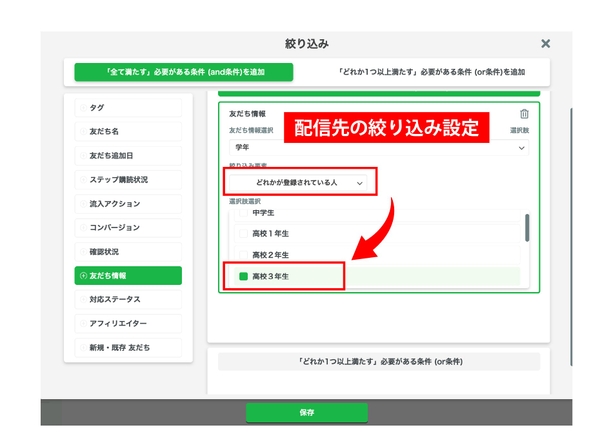たとえば、以下のように学年や属性に応じた情報を届けています。