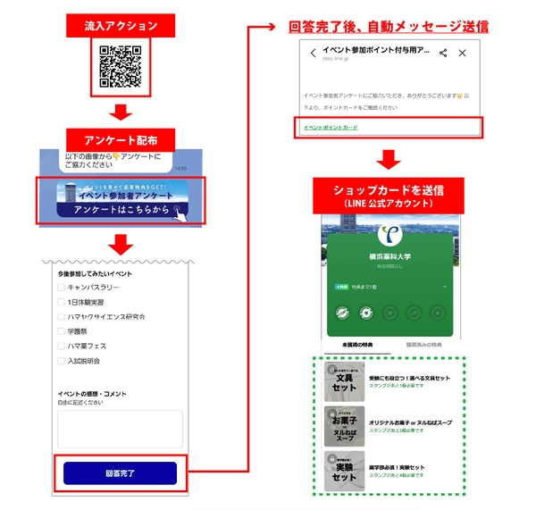 ・イベント専用QRを読み取り → 自動でアンケート配布&ショップカード送信