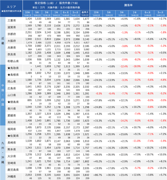※2025年2月の販売件数*2が50件未満の県は、算出根拠となるデータ数が少ないため下記対象から除外。