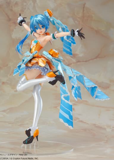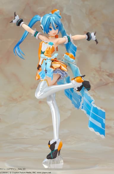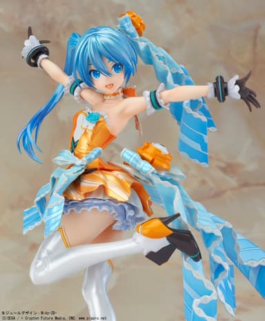 セガのリズムゲーム『初音ミク -Project DIVA- 2nd』に登場するモジュール「オレンジブロッサム」が1/7スケールで立体化!鮮やかなオレンジ&ブルーの衣装をパール塗装によって完全再現しました。原型師グリズリーパンダ氏のエッジ感ある造形と未来感ある衣装との相性はバツグンです。隅々まで楽しむことができる一品となっています。