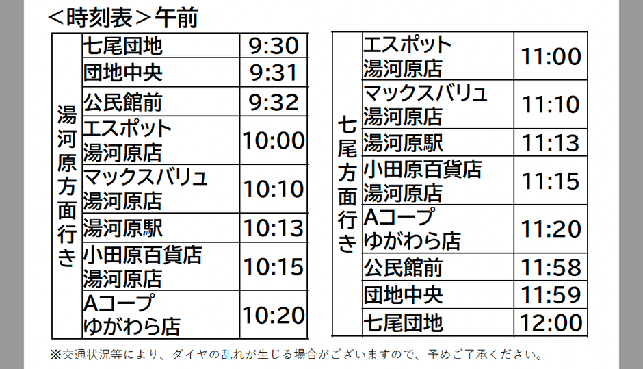 バスの運行に関するお問い合わせ先:ニコーバス(0557-85-2525)