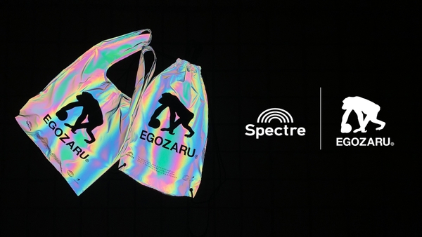 今回発売となるのはSpectre(スペクトル)が得意とする特許技術のオーロラのように反射する特殊な反射材(リフレクター)を⽤いたコンビニバッグとナップサックの2アイテム。この特殊反射素材は⾞のヘッドライトが当たった際、約57m以上の視認性があるとされています。2021年10⽉22⽇EGOZARU公式オンラインストアと札幌のEGOZARU OFFLINE STORE SAPPOROで発売予定。