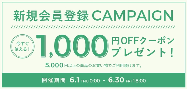 2023年6月1日から6月30日まで「新規会員登録キャンペーン」を開催中です。