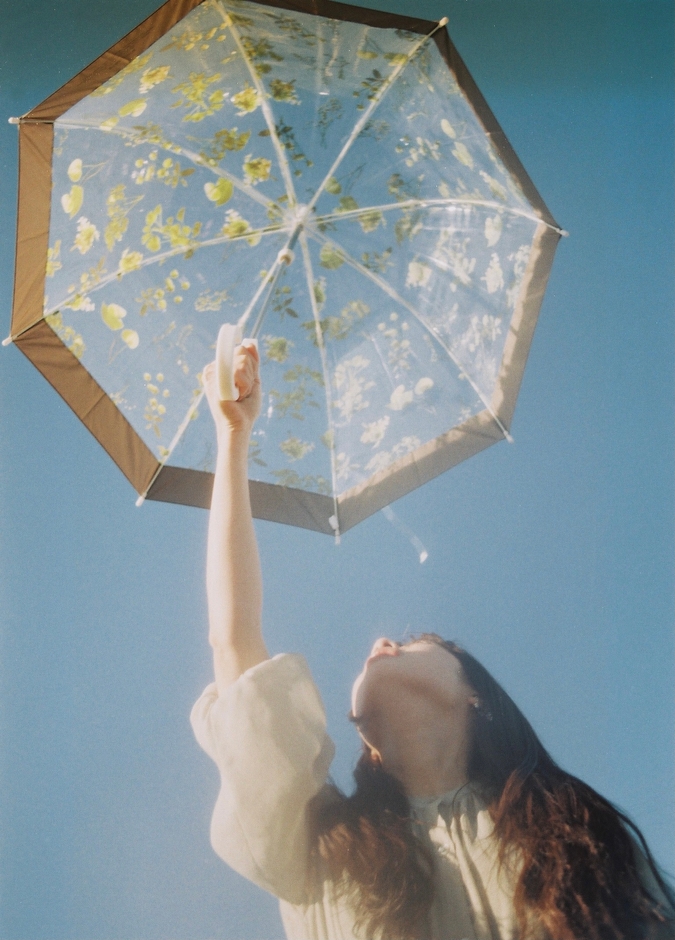 撮影は写真家の『葵』さんが担当し、傘に描かれた可憐な花々を活かし、ふんわりと包み込まれるような感覚になるフォトコレクションとなっており