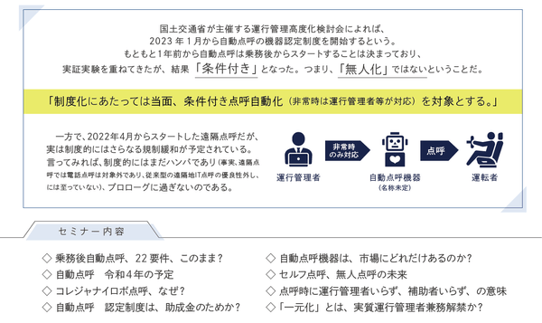 2023年1月から自動点呼実施スタート!自動点呼~実施のための課題とは~無料セミナー10月7日(金)開催のお知らせ