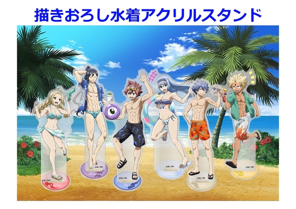 初回特典のBOXやジャケットは、キャラクターデザインを担当する飯泉俊臣の描き下ろし!他にも映像特典や特製ブックレットに加えて、水着アクリルスタンド6体も封入!