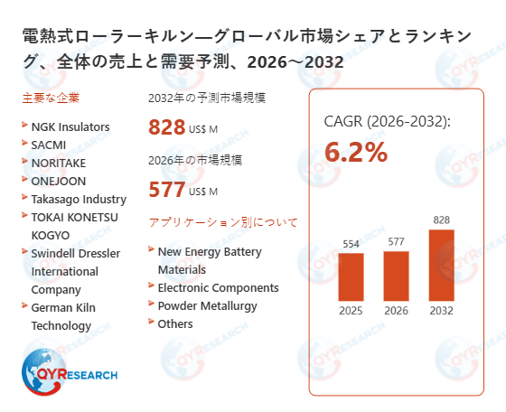 上記の図表/データは、QYResearchの最新レポート「電熱式ローラーキルン―グローバル市場シェアとランキング、全体の売上と需要予測、2026~2032」から引用されている。