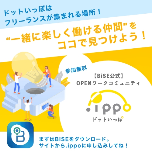 「.ippo(ドットいっぽ)」は、フリーランスや副業を頑張る人が「仕事につながる"人脈"を作る」ための完全無料のコミュニティです。