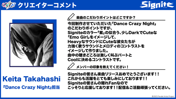 Keita Takahashi「Signite『Dance Crazy Night』」担当