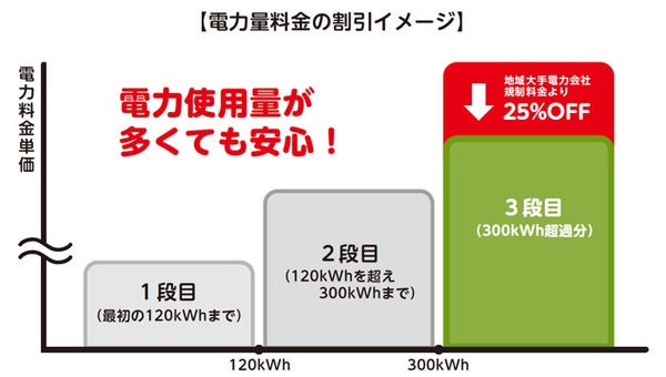 「GREENホーム」は、環境への配慮と価格メリットを同時に実現しました。具体的には、従量料金単価の3段目料金を地域大手電力会社規制料金プランより25%割安に設定しており、ファミリー世帯やリモートワークで在宅比率が高くなった方など、電気を多く使用される方に削減効果が大きいという特長があります。加えて、どのプランを選んでも実質再エネのメニューであるため、CO2削減が期待できます。