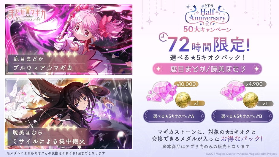 9月28日(日)20:00より、ハーフアニバーサリーを記念して、「72時間限定!★5キオク確定マギアキー&マギカストーンパック」を販売いたします。