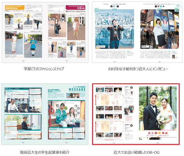本学はこれまでに週刊誌『AERA』(朝日新聞出版)とコラボレーションするなど、受験生が手に取りやすく、本学の研究や教育を理解していただけるような大学案内の制作に取り組んできました。2016年度版からは、本学の魅力をより身近に感じていただきたいという思いからカルチャー誌『TOKYO GRAFFITI』とコラボし、同雑誌の人気企画を近大版にアレンジした大学案内を制作しています。街角でゲリラ取材を行い、リアルな東京の今を掲載してきたグラフィティのノウハウを生かし、受験生とのコミュニケーションツールとして本学の活気あるリアルなキャンパスライフを伝えます。