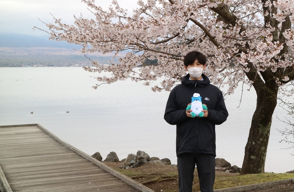 富士山を眼前に望む山中湖をバックに写真を撮影、コメントともに応募してください。