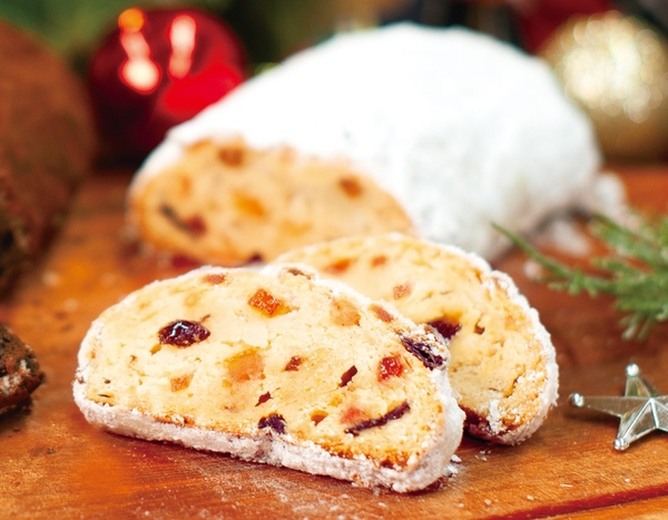 商品特徴:ドライフルーツ・ローストアーモンドを包んだ、クリスマスを代表するドイツの伝統的な焼き菓子。