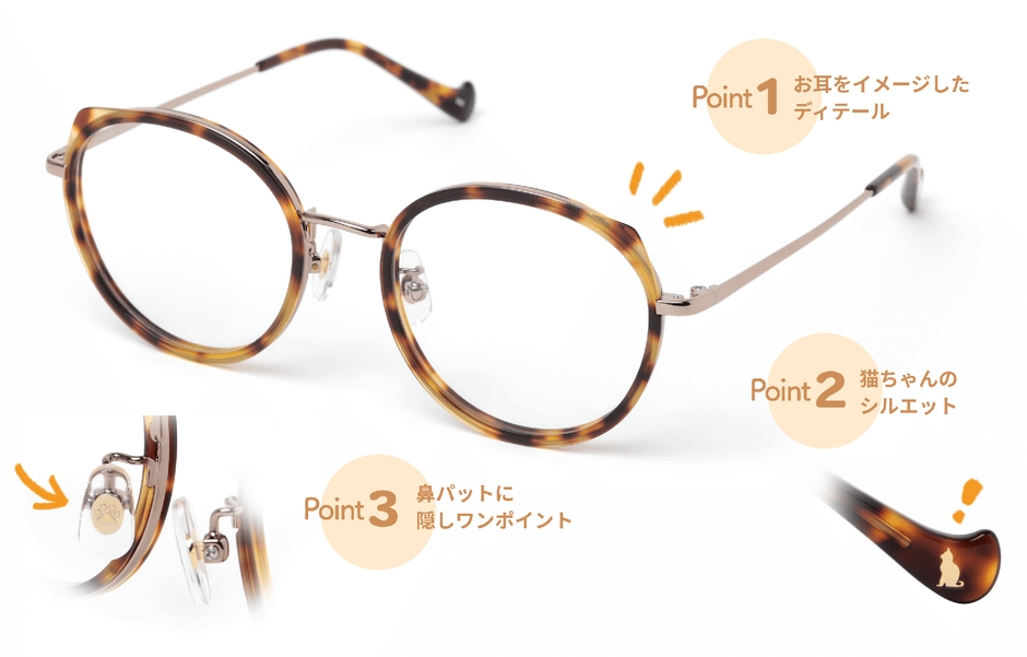 過去にメガネケースやメガネ拭き、くもり止めグッズなどのコラボ商品を展開してきましたが、今回2022年2月22日という特別な猫の日を迎えるにあたり、メガネフレームを発売することとなりました。