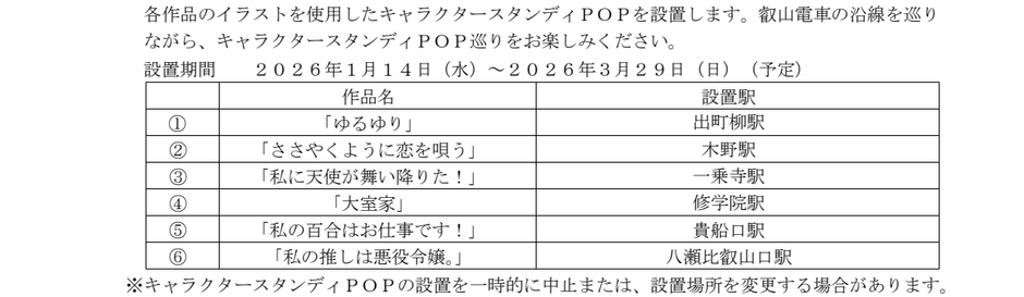 2026年1月10日(土)より、 「コミック百合姫 創刊20周年」×「叡山電車開業100周年」を祝って コラボレーション企画≪第2弾≫を実施します