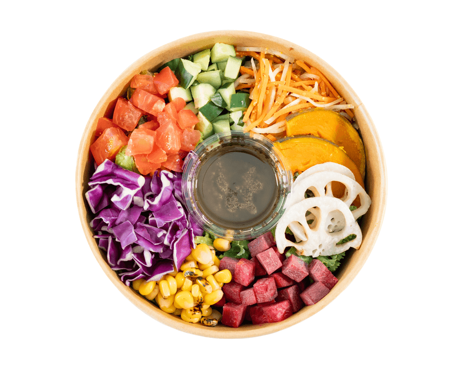 10種類の新鮮な野菜を1ボウルに盛り合わせた、彩り豊かで栄養バランスの良い定番サラダ。食材の持ち味を引き立てる風味豊かな海苔ドレッシングを組み合わせ、野菜本来の味わいとそれぞれの食感がお楽しみいただけます。