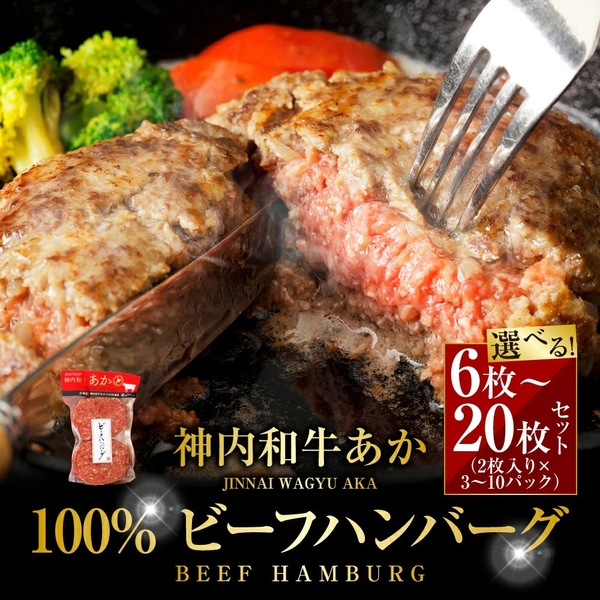 神内和牛あか 100% ビーフハンバーグ 選べる 6枚 10枚 20枚セット(2枚入り×3~10パック)