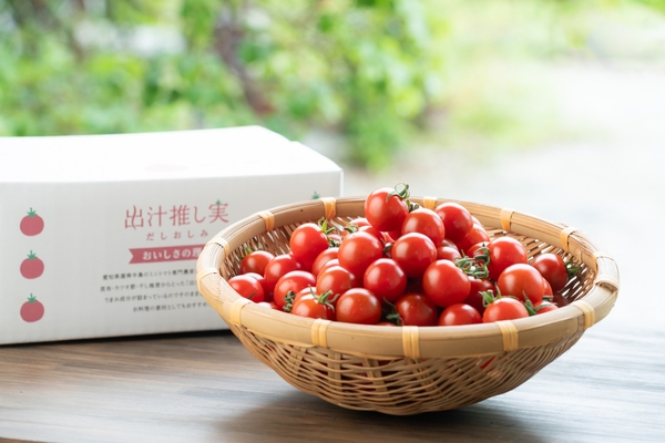 内容:ミニトマト「出汁推し実」1.5kg(通常梱包)+生産者 小川浩康による1〜2時間のご訪問・対話