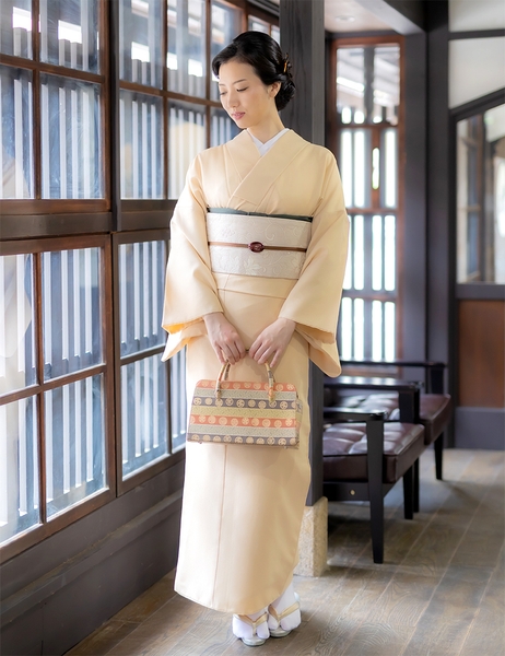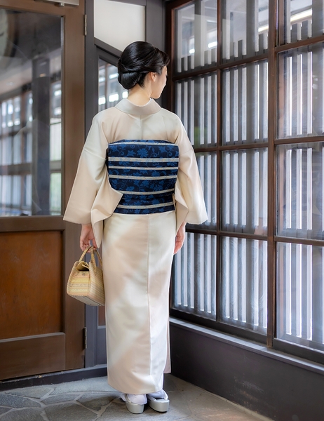 無地の着物だからこそ、帯遊びや小物選びでコーディネートが楽しめます。