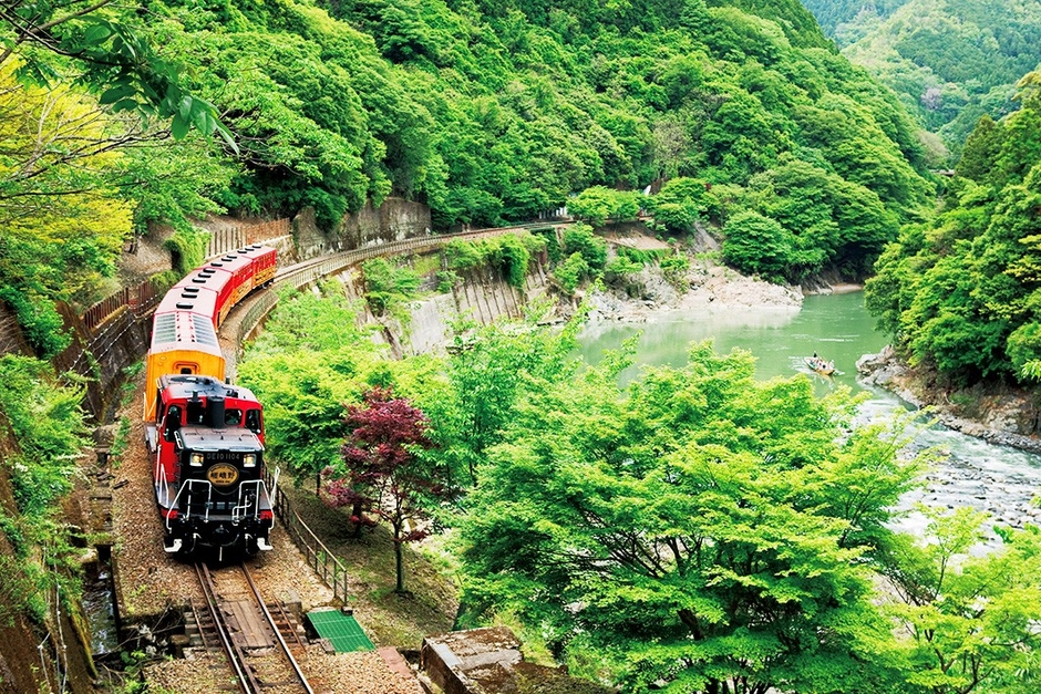 京都・嵯峨野の緑のトンネルへ — トロッコ列車で25分間