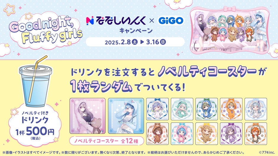 株式会社GENDA GiGO Entertainment(本社:東京都港区 代表取締役社長:二宮 一浩 以下、「当社」)は、2025年2月8日(土)よりGiGOのお店限定にて「ななしいんく×GiGOキャンペーン~Good night Fluffy girls~」を開催いたします。