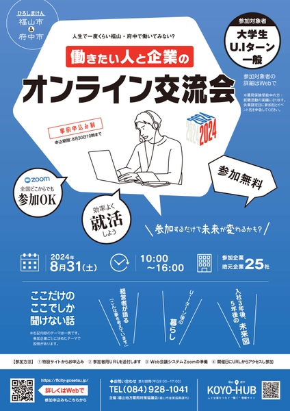 「2024年福山・府中 働きたい人と企業のオンライン交流会」開催!