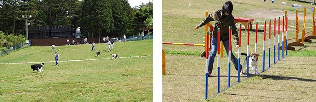 昨年度ドッグラン開催時の様子 / ワンちゃん大運動会開催時の様子当園の「ドッグラン」は、約2,000平方メートルの傾斜地を利用した広大な天然芝生エリアで、リードをはずしてのびのびと遊ぶことができます。街中での散歩では味わえない開放感が当園の「ドッグラン」の魅力で、年々、利用数は増加し、昨年の同期間開催時には約1,300頭の利用があり、たくさんのワンちゃん連れのお客様にお楽しみいただきました。なお、後期は9月~11月に開催の予定です。