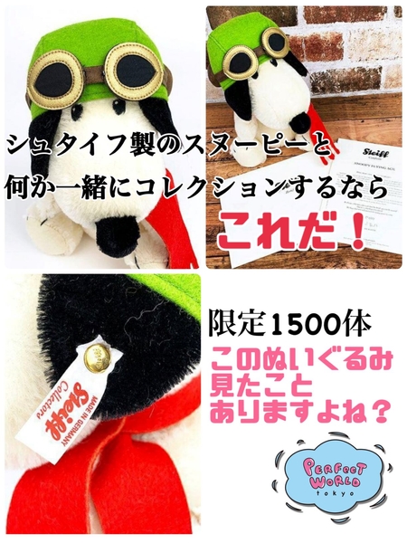 このぬいぐるみ見たことありますよね?今日はシュタイフ製のスヌーピーフライング・エースと何か一緒にコレクションするなら?というお話です。