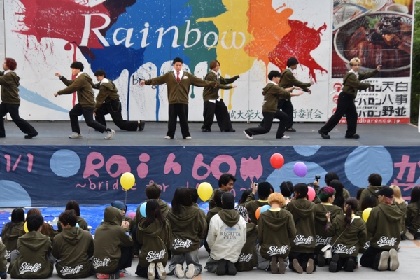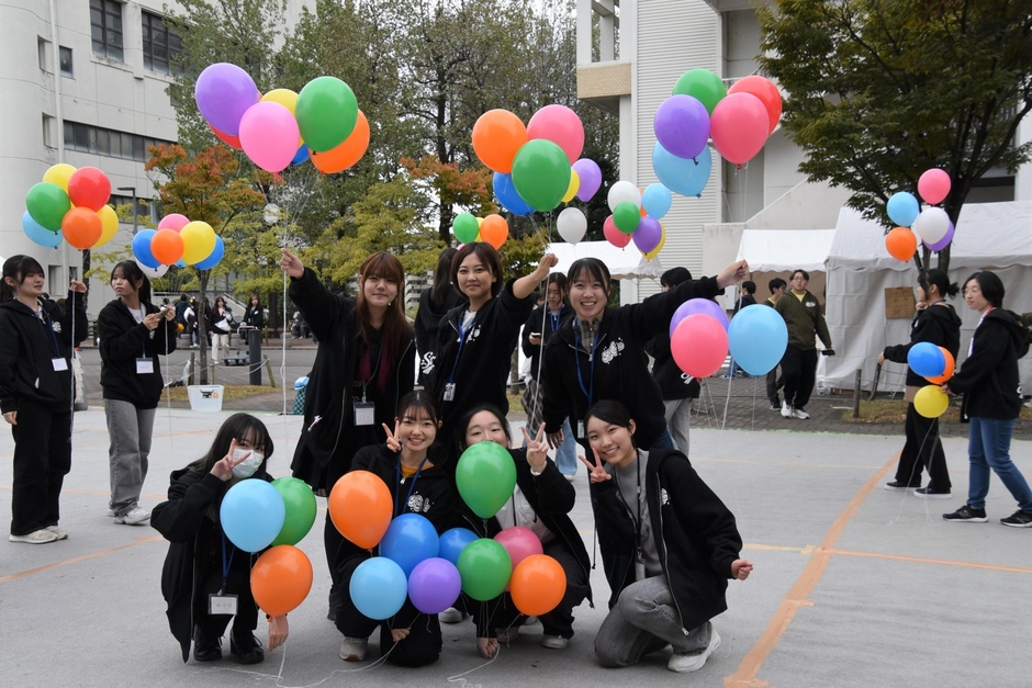 大学祭の今年のテーマは「Rainbow ~bridge for 100th~」で、「Rainbow」が困難の後に現れる希望と再出発を、「bridge」は今を生きる私たちから来年に迎える開学100周年へとつながる想いの橋を象徴し、「過去の歩みを振り返りながら、未来への一歩を祝う特別な節目であり、100周年に向けて学生と教職員、地域の皆さんで架ける『虹の橋』でつながりと笑顔・感謝の気持ちを分かち合いたい」との思いが込められています。