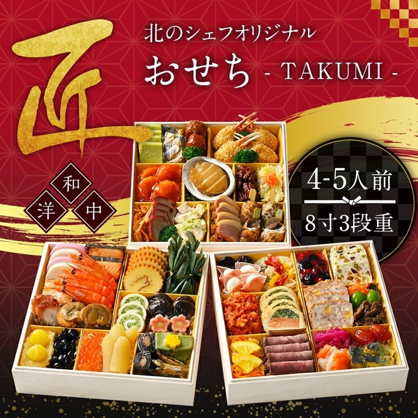 北のシェフオリジナル 御節 匠 8寸三段(4~5人前)(和・洋・中)