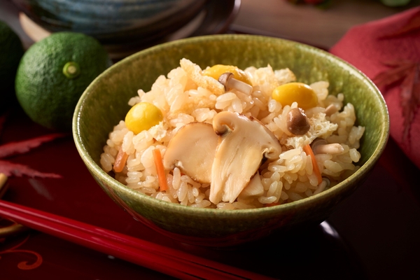 松茸と銀杏をふっくらと炊き上げました。香りと風味をお楽しみください。